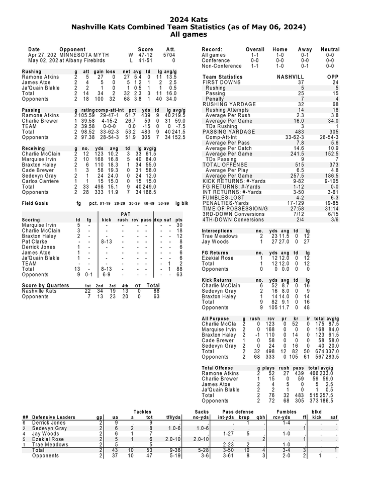 CLOSING IN ON 500: Ramone Atkins is just 61 yards away from reaching 500 passing yards this season. So far, Atkins has completed 29-of-47 passes, resulting in nine touchdowns. Additionally, Atkins leads the team in rushing yards with 27.